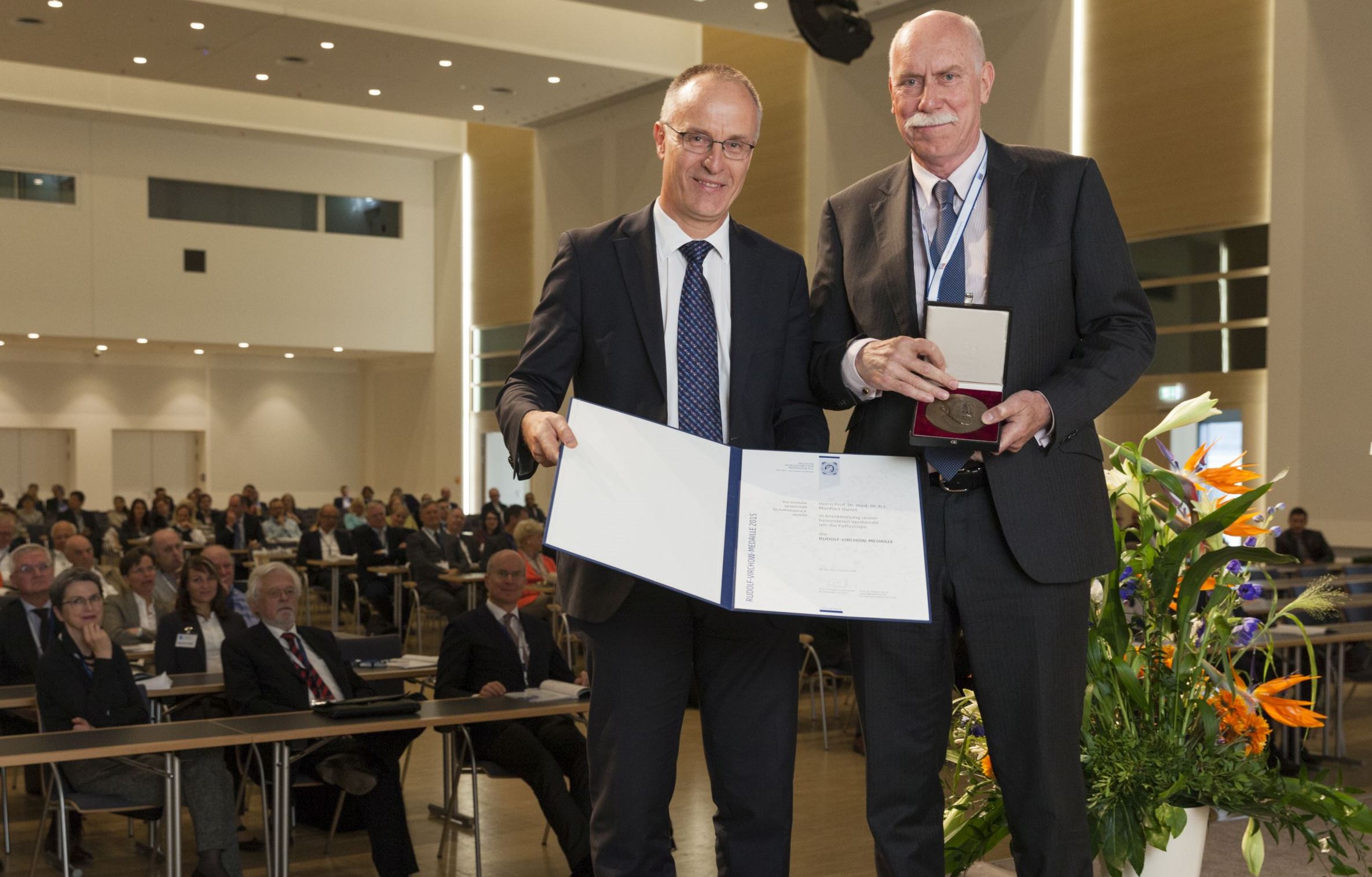Im Rahmen der Eröffnungsveranstaltung wurden in diesem Jahr sowohl die <link internal-link internen link im aktuellen>Rudolf-Virchow-Medaille als auch der <link>Rudolf-Virchow-Preis vergeben: