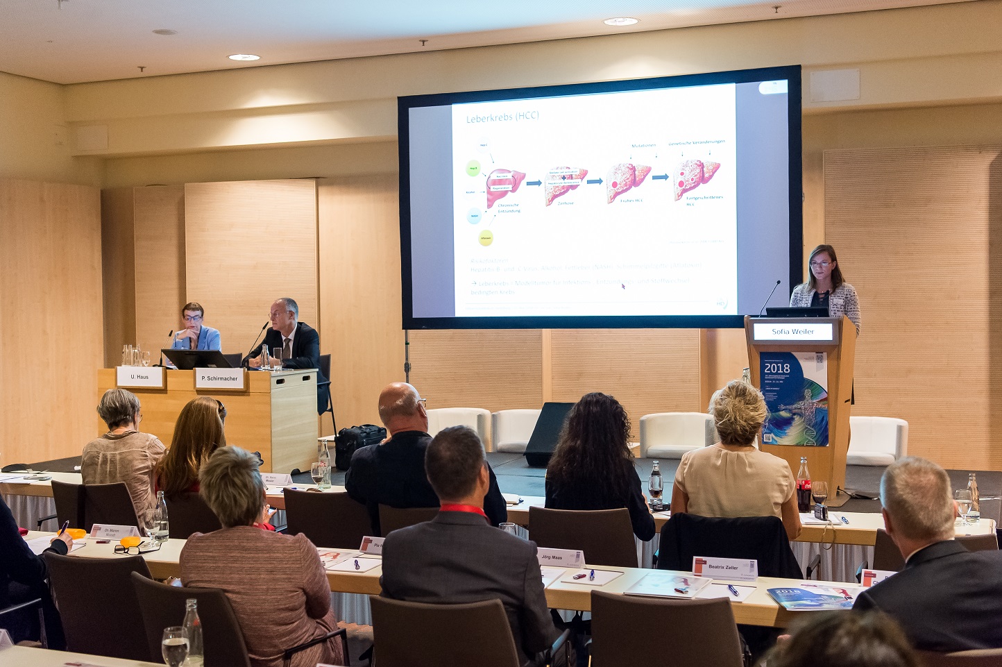 Mit dem vierten Novartis-Preis der DGP wurde Frau Dr. rer. nat. Sofia Weiler für ihre translationale Forschung zum Leberzellkarzinom ausgezeichnet. In ihrer Forschungsarbeit „Induction of Chromosome Instability by Activation of Yes-Associated Protein and Forkhead Box M1 in Liver Cancer” untersuchte sie die Rolle des Hippo-/YAP-Signalwegs beim hepatozellulären Karzinom (HCC). Dieser steuert bei Säugetieren die Zelldifferenzierung und ist für Wachstum und Entwicklung von Organen und Geweben mitverantwortlich.