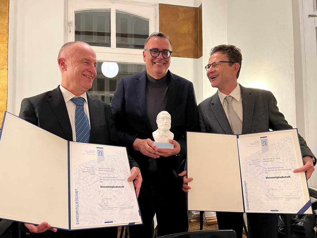 Die Ehrenmitgliedschaft wurde Herrn Prof. Moch und Herrn Prof. Schirmacher auf der letzten Mitgliederversammlung der DGP am 10. Juni 2022 in Münster verliehen.
