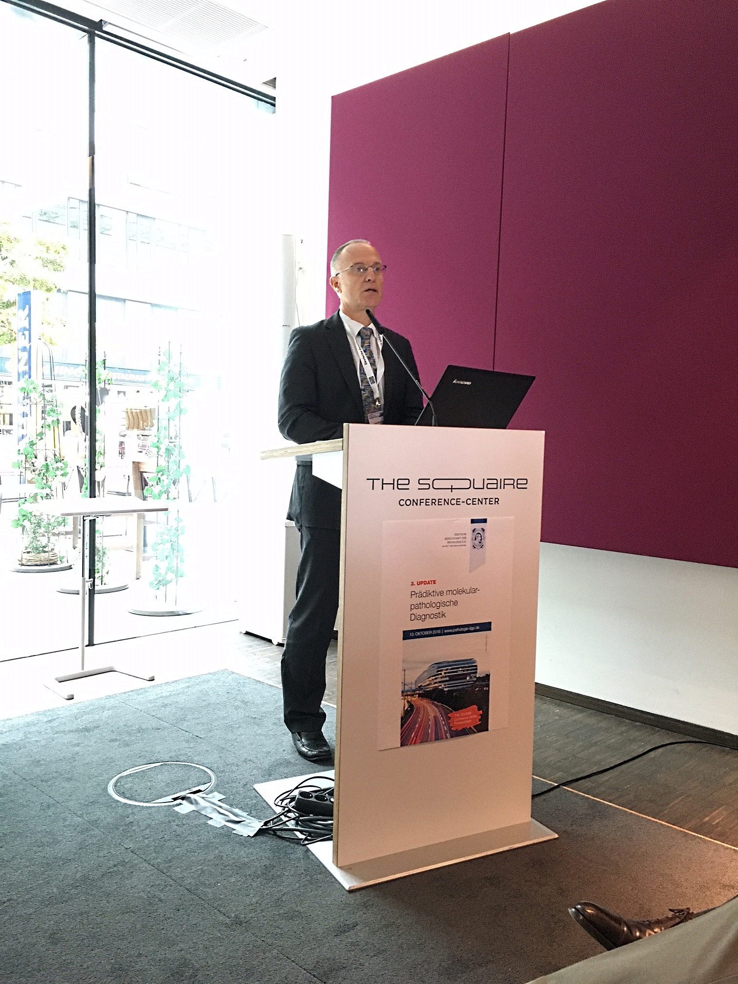 Im ersten Teil gaben die Referenten einen umfassenden Überblick über die Entwicklungen des letzten Jahres im Bereich NGS, Liquid Biopsy und PD-L1 Testung. Dabei wurden gemeinsam mit den Teilnehmern mögliche Problemlösungen zum Beispiel für den Transport von Blutproben für Liquid Biopsy erörtert und die Wichtigkeit des Besuches von PD-L1 Trainings hervorgehoben. Nach der Pause folgten Organupdates zu Mammakarzinom, Hämatologischen Neoplasien, GI-Trakt- sowie Urologische Tumoren und EGFR-IHC beim NSCLC. Abschließend stellte Frau Kempny vom Bundesverband Deutscher Pathologen die Neuerungen aus Kapitel 11 Humangenetik im Abschnitt 19.4 des EBM vor und präsentierte eine Übersicht zu den neuen Abrechnungsmöglichkeiten. (Ein komplettes Programm kann <link file:558 _blank download herunterladen der datei>hier heruntergeladen werden). Insgesamt verlief das Treffen wieder sehr produktiv, sodass wir bereits heute verkünden können: Am 12. Oktober 2017 wird das Update wieder am bekannten Ort stattfinden!