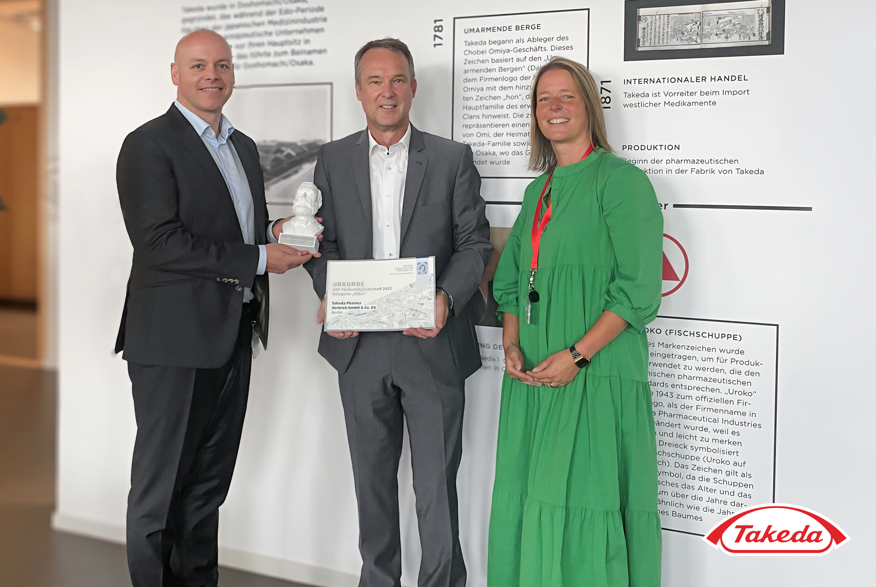 Takeda Deutschland gehört zur japanischenTakeda Pharmaceutical Company Limited, die Standorte in 80 Ländern weltweit mit über 50.000 Angestellten hat. Neben Berlin hat Takeda Niederlassungen in Konstanz, Singen und Oranienburg. Auch in Österreich (Wien, Linz) und der Schweiz (Zürich, Pfäffikon) hat Takeda Ableger.